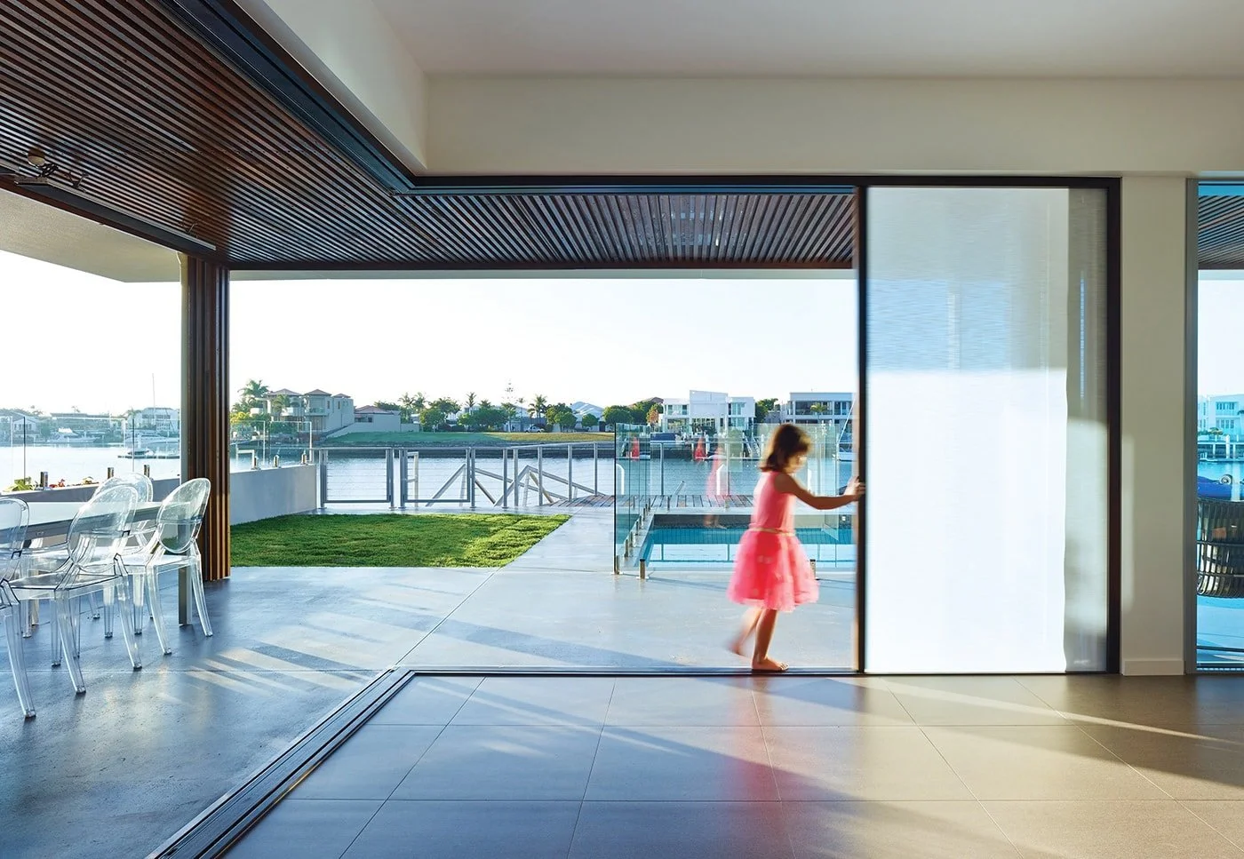 The S4 System is designed for large door openings to mitigate insects, glare and loss of privacy. When not in use, the screen or shade retracts discreetly into the frame removing visual distractions, making it ideal for a seasonally used product.
